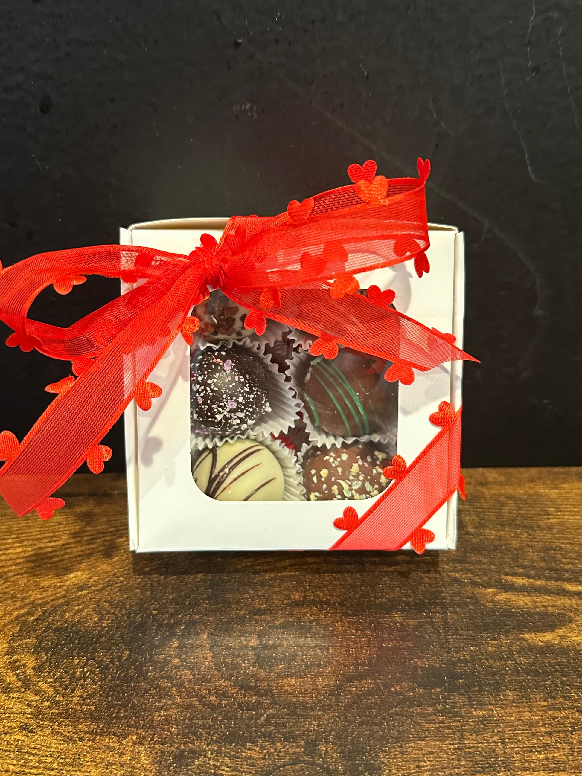 Celebrate love with our Valentine’s Truffle Box, featuring six mini truffles in a delicious mix of flavors. A thoughtful, indulgent treat made to say I love you in the sweetest way.